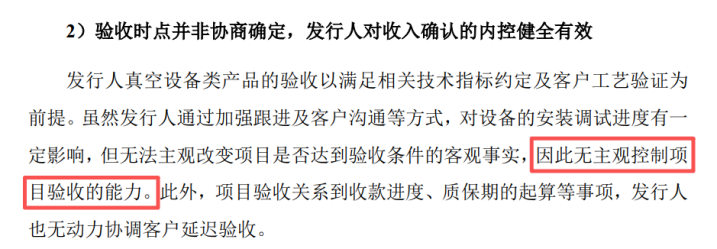 其在回复中称,对验收时点“无主不雅限制样式验收的才调”,即验收时点扫数由客户决定。这一表述揭示了两个深层问题:其一,即便选择时点法阐明收入,卖方也应有相应的合同管理和回款管理机制,而广泰真空的说法无异于承认面临下旅客户毫无谈话权,回款管理存在关键轻视;其二,淌若验收时点扫数由客户掌抓,则将为客户与广泰真空的跨期收入扶助预留雄壮操作空间。