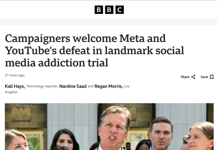个股中,Meta推崇最差,单周下落超11%,创下自2025年10月以来的最大单周跌幅。阛阓仍在消化本周该公司输掉具有里程碑兴味的“好意思国酬酢媒体成瘾案”裁判的影响。据路透社报谈,加州联邦法院的裁决认定Meta在算法筹算上存在有益带领用户千里迷的举止,这可能为后续一系列诉讼掀开闸门。